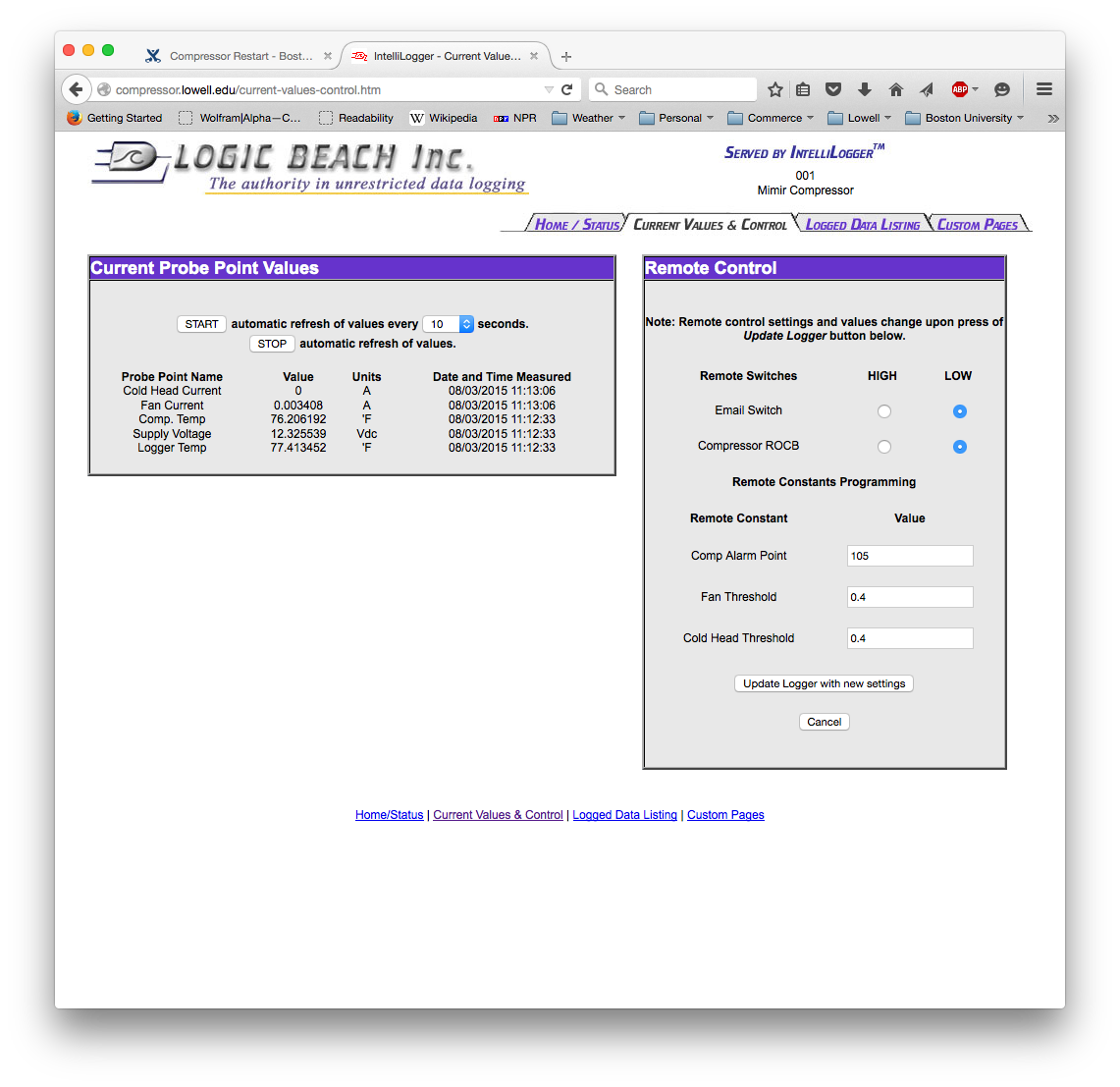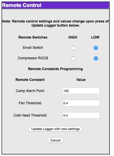 First start by locating the page below through the compressor logger web page. This